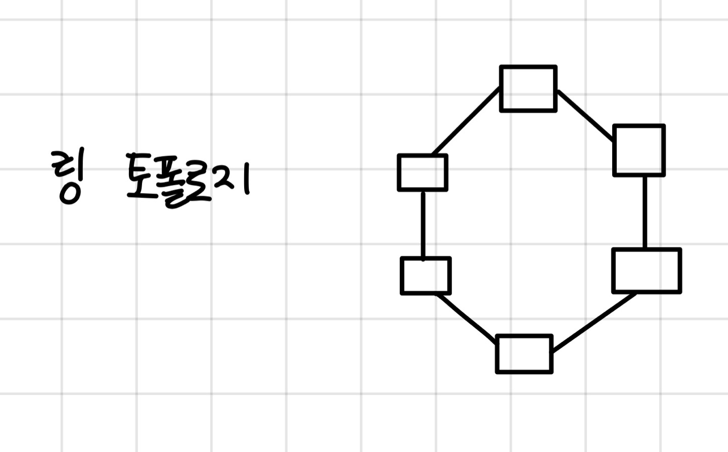 - 링형 토폴로지 (Ring Topology)