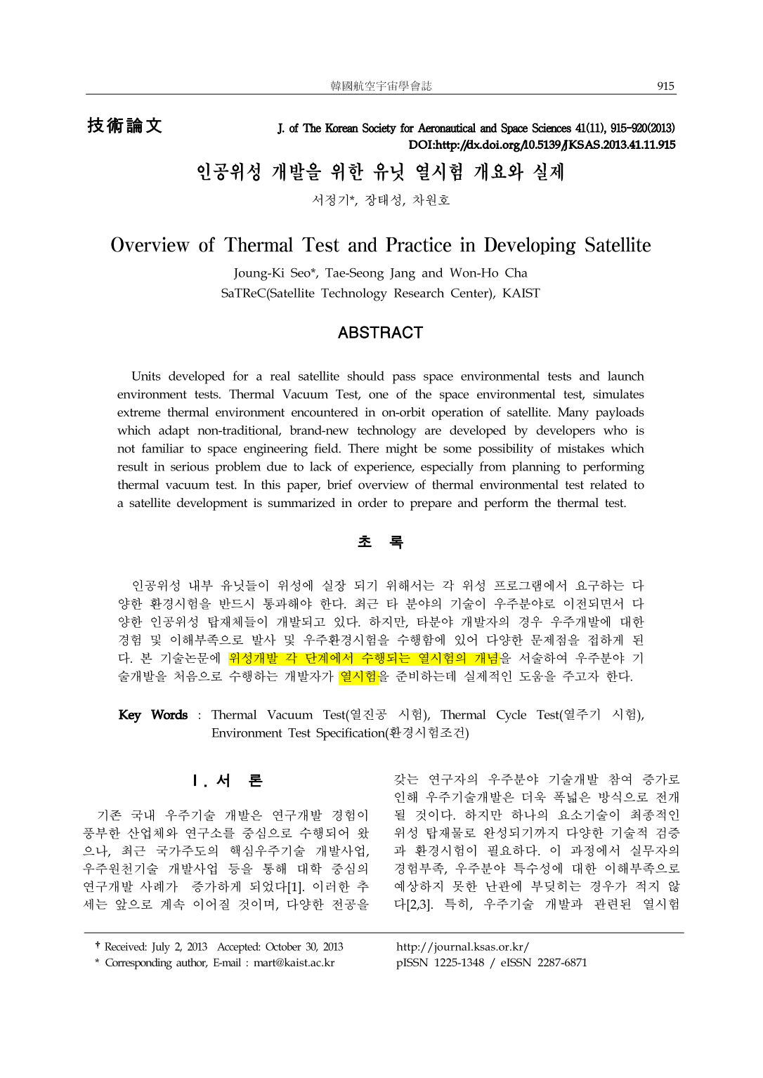 인공위성 개발을 위한 유닛 열시험 개요와 실제 본문