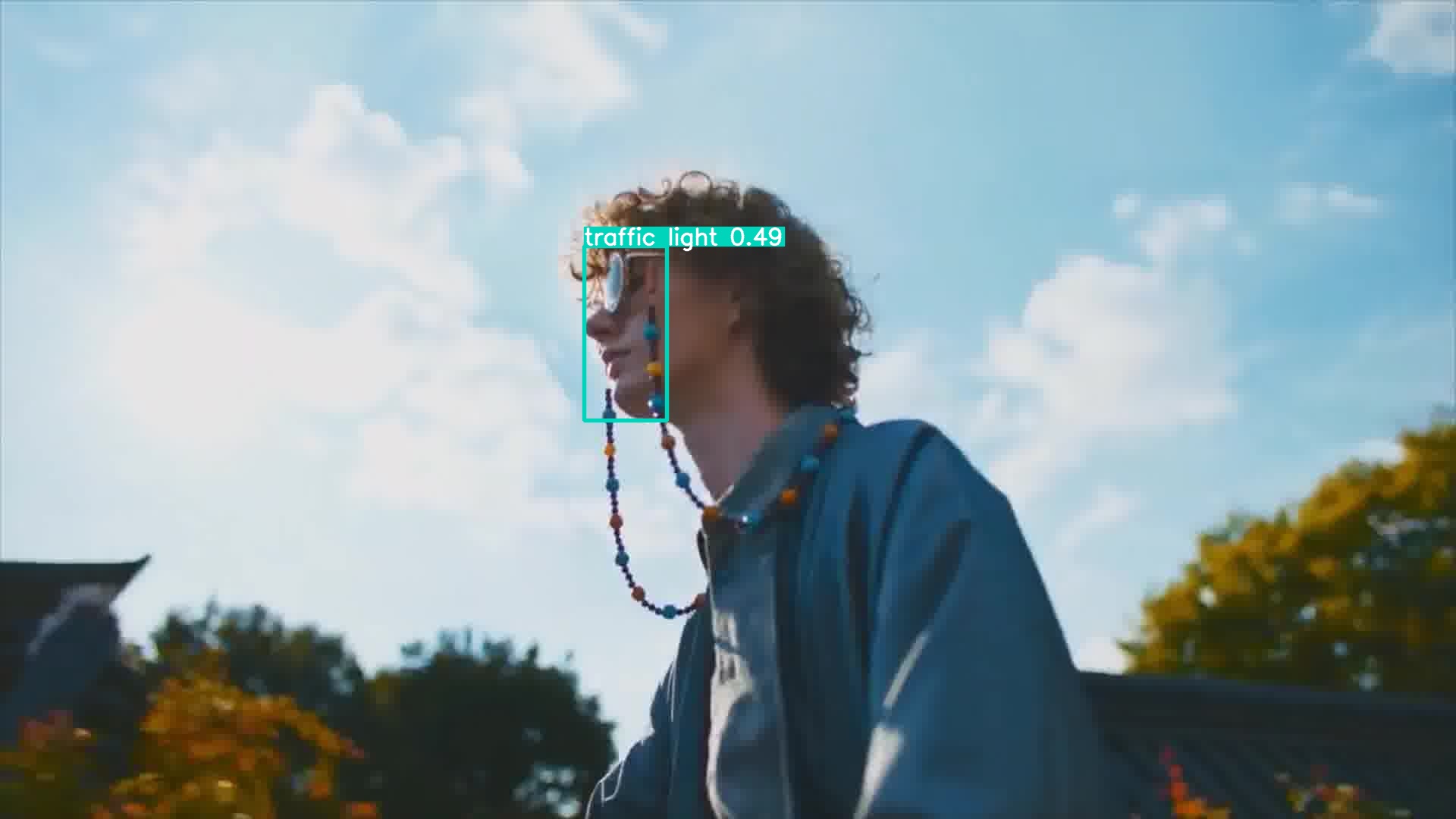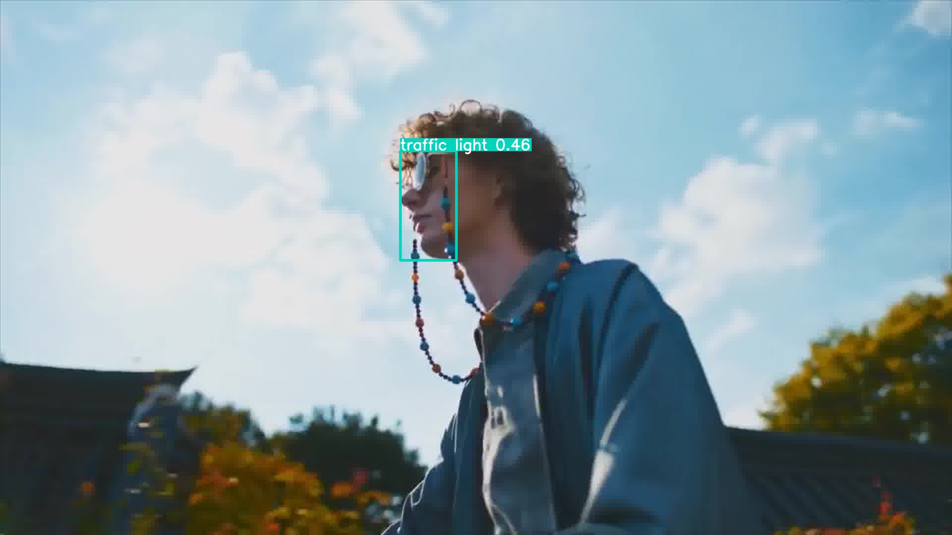 안경 쓴 사람 얼굴을 traffic light으로 인식하기도 하였습니다. mp4에서는 person이라고 잘 인식하던 것과 대조된 결과입니다.
