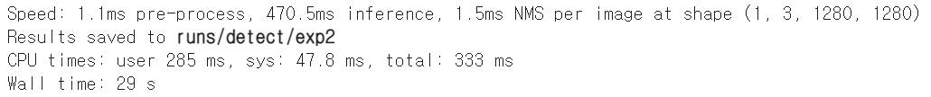추출한 이미지에 대해 아래의 코드로 yolov5 모델을 적용해보았습니다.