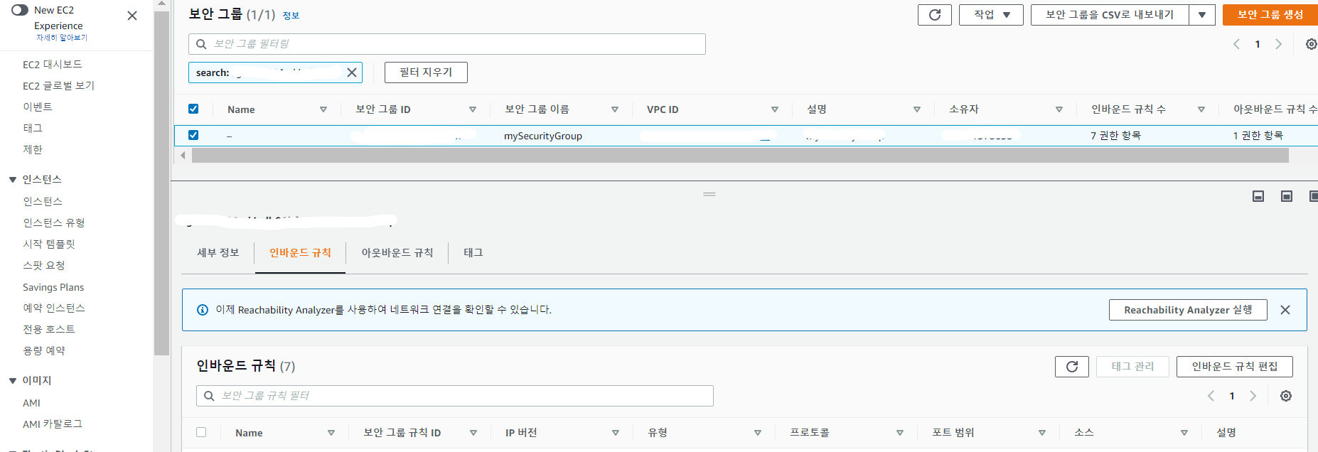 이제 보안 그룹의 인바운드 규칙을 수정해주겠다.