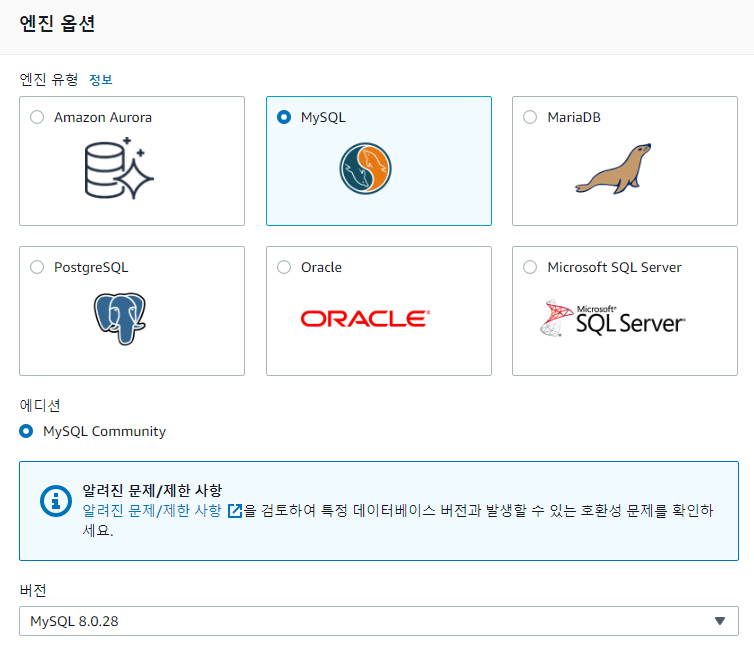 우선 RDS management console에 들어가서 데이터베이스 생성 버튼을 누른다.