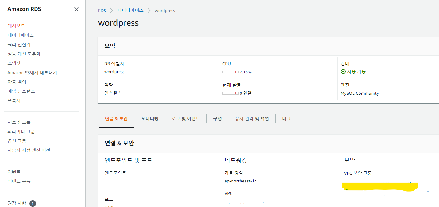 이 과정을 통해 wordpress 인스턴스에 RDS를 연결할 수 있다.