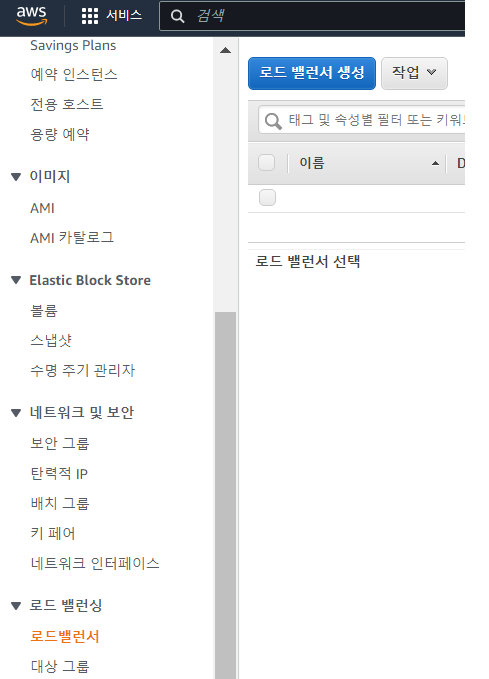 로드밸런서 탭에 가서 "로드 밸런서 생성" 버튼을 클릭한다.