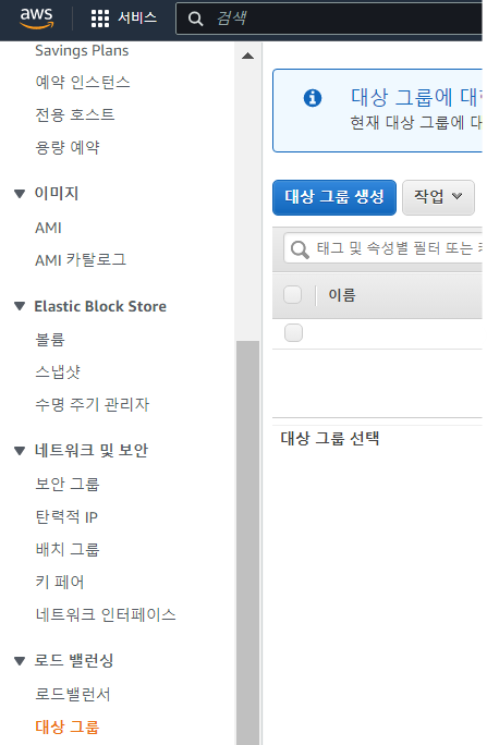 대상 그룹 탭에 가서 대상 그룹 생성 버튼을 눌러준다.