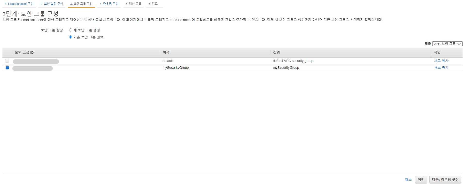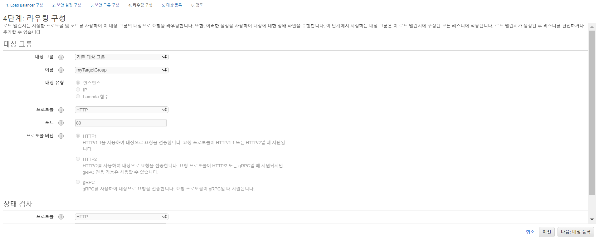 4단계 라우팅 구성에서는 앞서 생성하였던 대상 그룹을 선택해주었다.