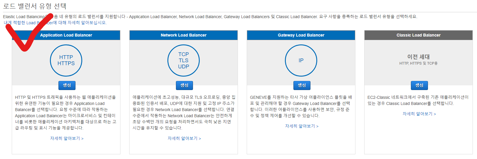 로드 밸런서 유형으로 Appllication Load Balancer를 선택해준다.