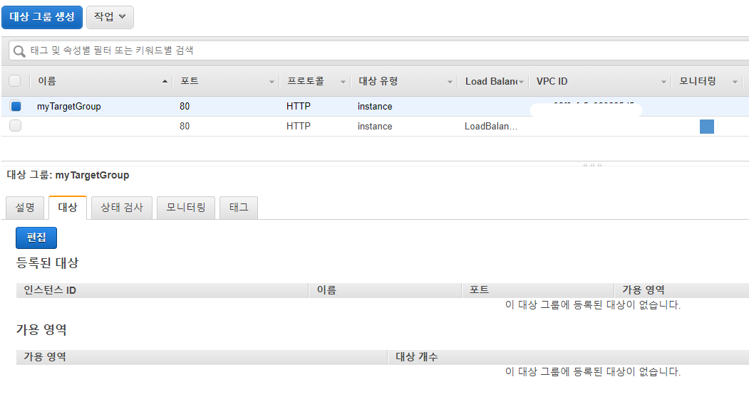 대상 그룹을 생성해주었으니 이제 대상을 추가해주어야 한다.