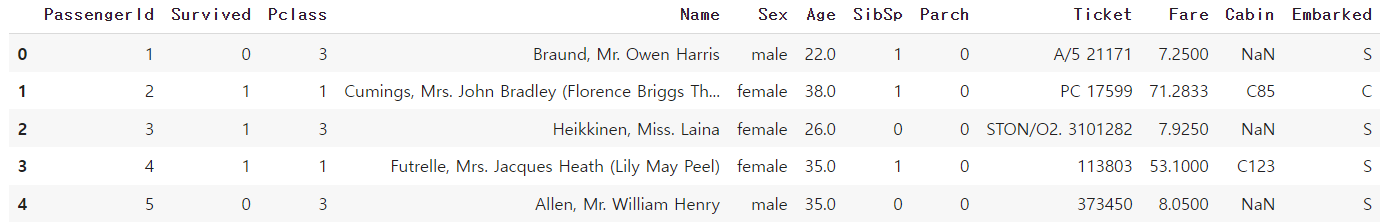 이때 'Survived'는 해당 passenger가 살았는지 죽었는지를 나타낸다.